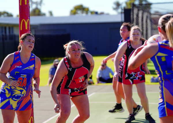 At the college, Bambill taught Cardy a netball lesson. Behind at quarter-time, the Saints exploded with 18 goals in the second term to burst the game open and then finished with a 19-goal fourth to cruise home 62-36.